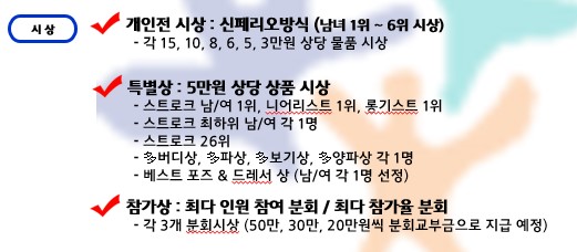 ※ 참가상 시상금은 분회교부금지급으로 8월 31일 지급될 예정입니다.