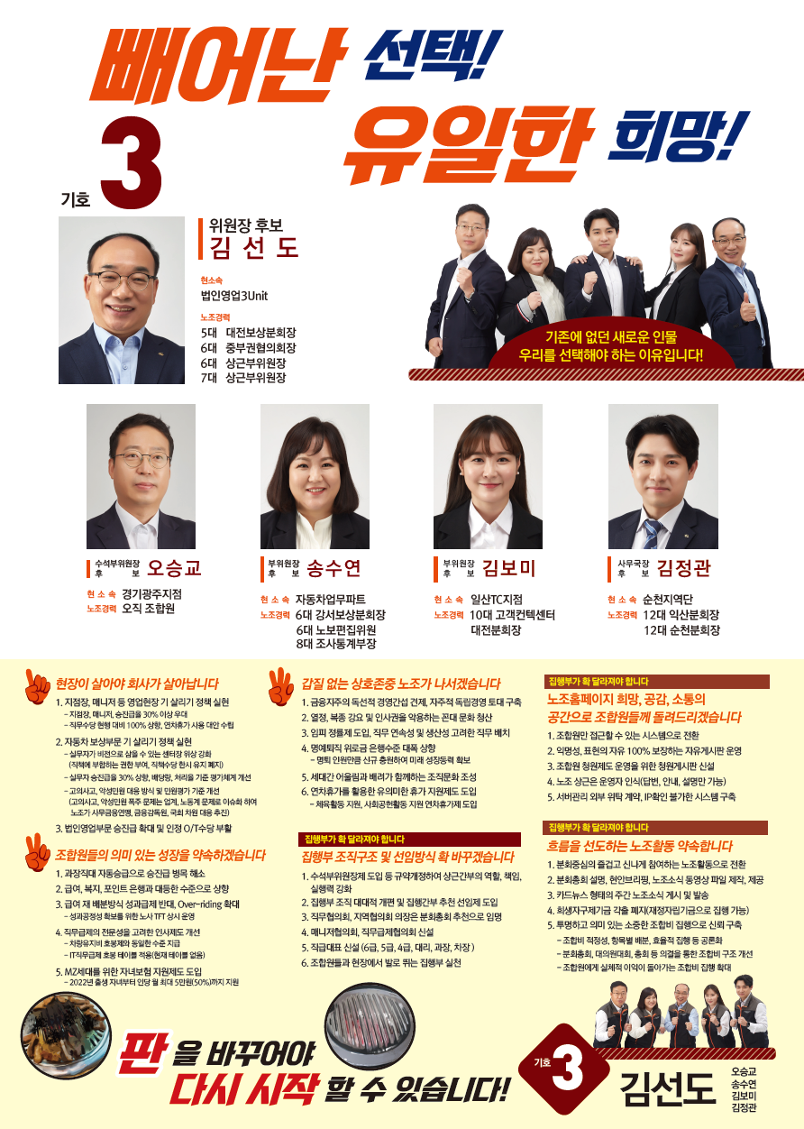 제13대 정·부위원장 선거 <기호3번 후보 포스터>