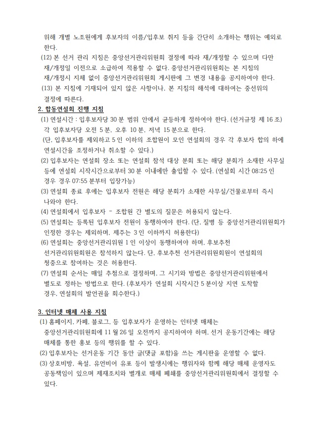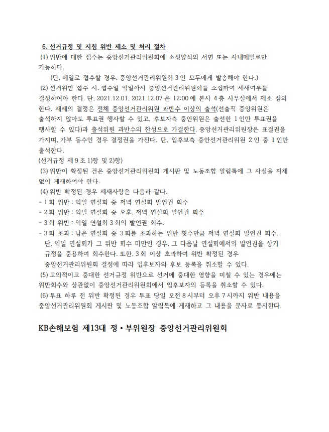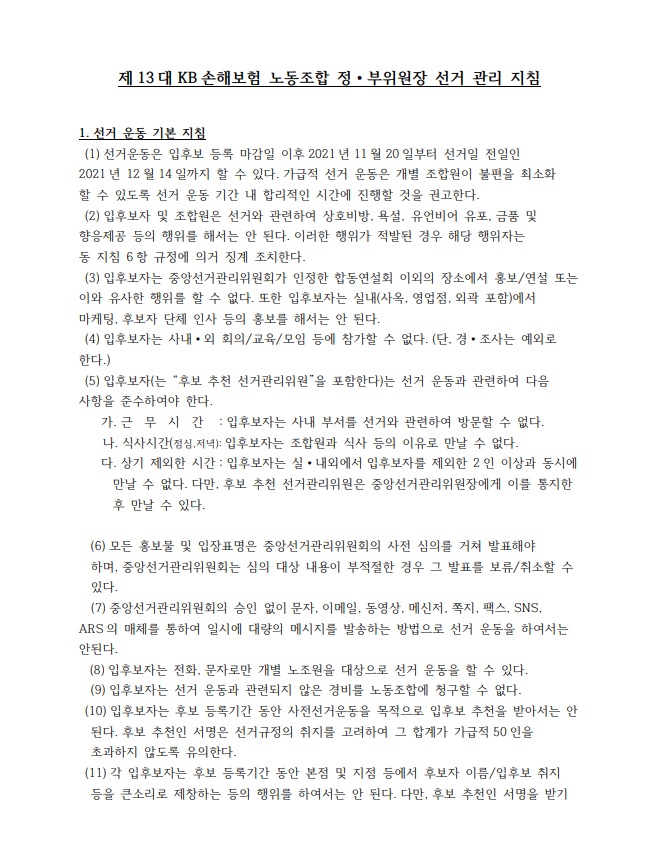 제 13대 정·부위원장 선거 관리 지침