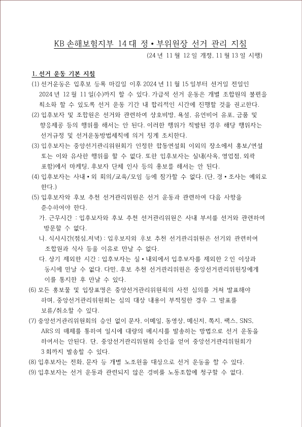 제14대 정부위원장 선거 입후보 등록결과 공지