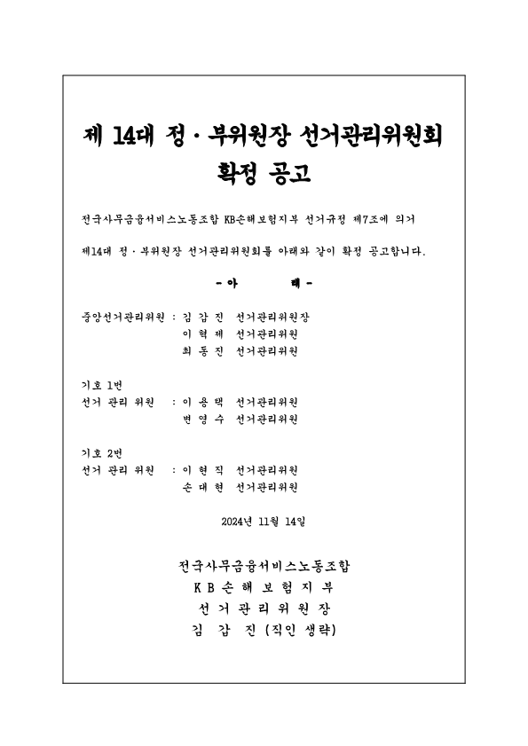 제14대 정부위원장 선거 입후보 등록결과 공지